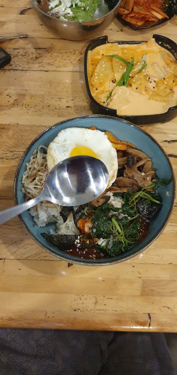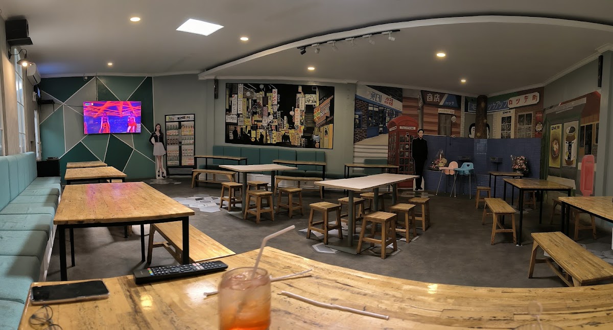15 Sep 2024 malem kesini,tempatnya bagus sih,nuansa2 korea gitu,tempat bersih,dingin, ada area smoking tuh kayaknya yg tengah..begitu masuk yg setelah area smoking,bagus bgt tempatnya,terang..sampe ponakan aku bilang "kaya masuk dunia lain" untuk makanan cukup lah rasanya..tapi pas aku pesen yg rice bowl beef gitu,asin bgt :( bulek aku pesen yg rice bowl chicken apa gitu,padahal di menu tulisannya spicy,tapi begitu di coba ga spicy :( manis2 gtu..tapi gapapaa,menjawab rasa penasaran karena tempatnya depan rumah tinggal nyebrang